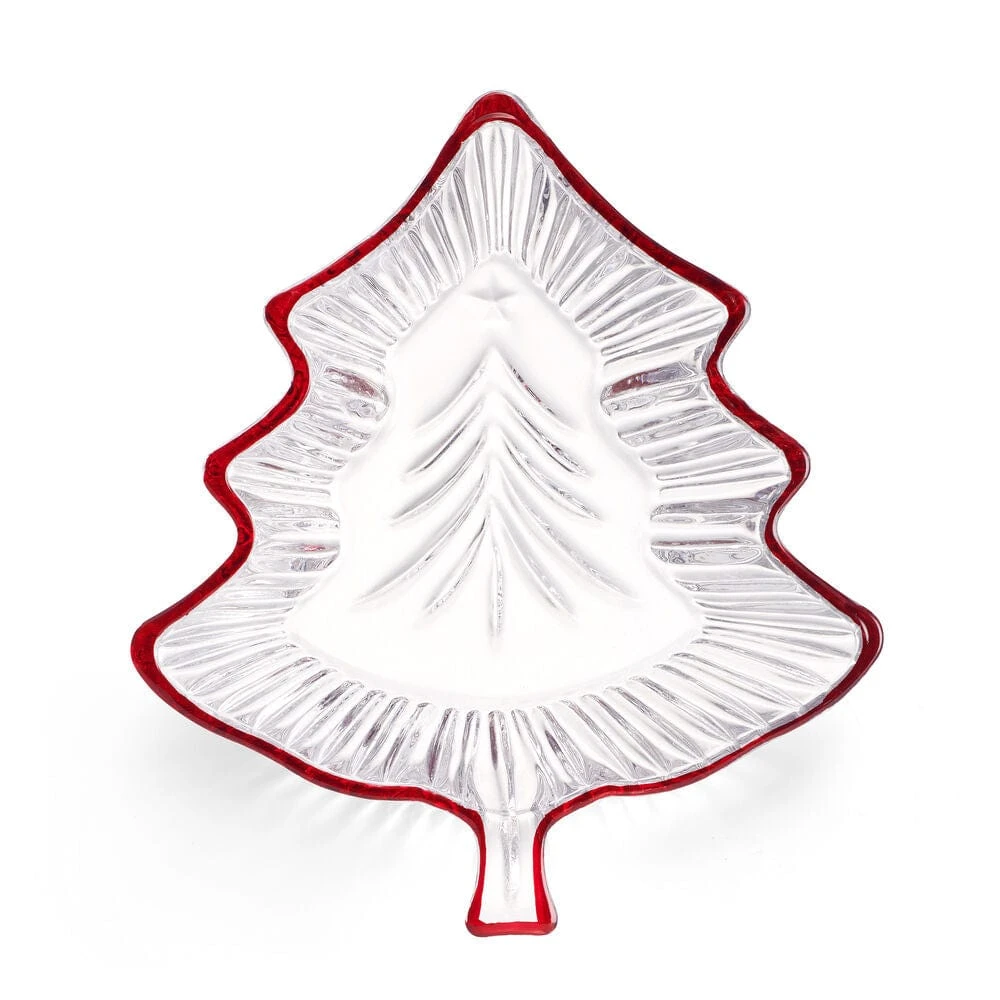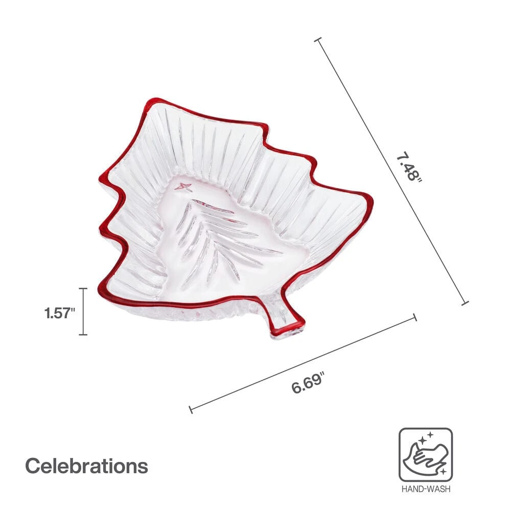 This Celebrations by Mikasa Christmas Tree Candy Dish features a red rim and is a festive way to serve your favorite holiday treats.