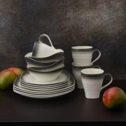MIKASA Swirl Speckle Graphite 16 Piece Dinnerware Set, Service For 4