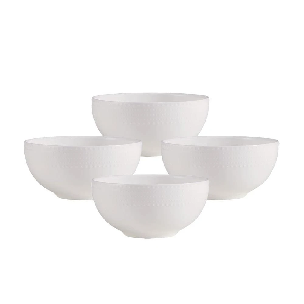Mikasa Annabel brings stylish sophistication to any gathering. Features delicate detailing around the rim, adding a touch of classic design, and is perfect for both casual and formal dining. Crafted of bone china. Microwave and dishwasher safe. Set of 4 fruit bowls, each measures 4-1/4 inch diameter x 2 inch high.
