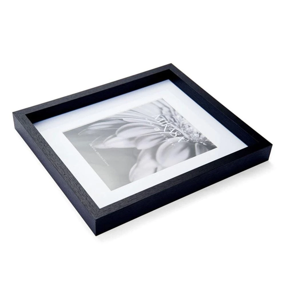This Mikasa Black Matted Gallery Frame is a stylish way to hold your favorite memories. Features a sleek, squared edge design, a bold black finish and a 2mm beveled mat that can be used to border a photo. Frame hangs easily either horizontally or vertically using the sawtooth hangers on the back.
