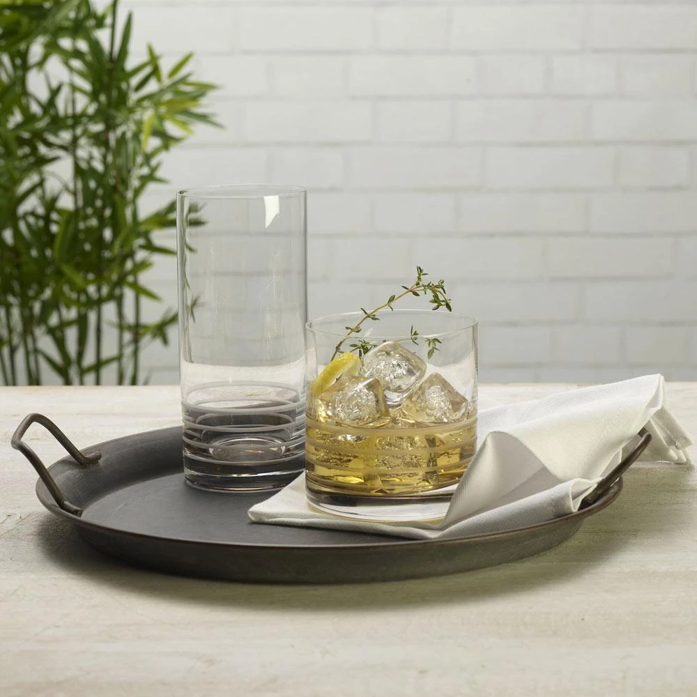 Bring a fresh look and a splash of color to any occasion with this Mikasa Cal Set of 4 Double Old Fashioned Glasses. These stylish and contemporary glasses are highlighted by a smoke tint that begins at the base and fades upward into distinct, horizontal cut lines, creating a visually arresting effect.