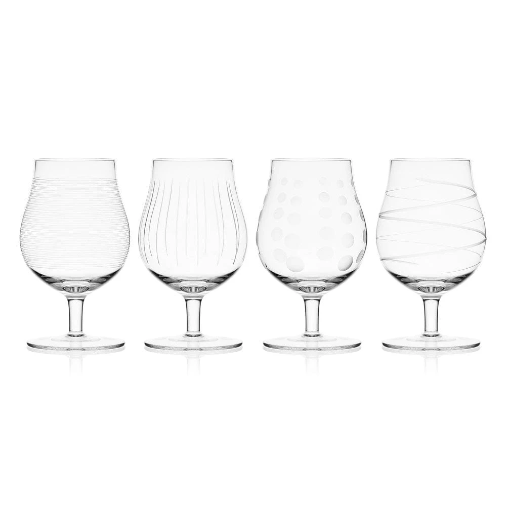 The fun and whimsical designs of the Cheers collection set a festive mood at any gathering. These beer glasses have a handsome, tulip shaped bowl that enhances aromas and flavors of beers, while the fine stem keeps the heat of your hands away from the contents. Each glass has a distinct dot, line, or swirl pattern, so your guests can easily identify their glass.