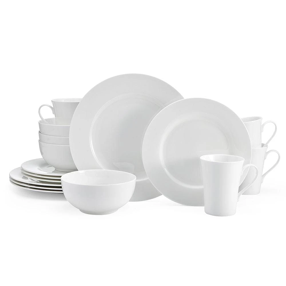 Mikasa Delray dinnerware brings sophistication to any table using minimalist style, clean lines, and smooth, pure white surfaces. Made of high quality bone china this collection is casual and stylish and great for everyday use. Chip resistant, microwave, dishwasher, freezer and oven safe. 16 piece dinnerware set, service for four, includes (4) each: 11 inch dinner plate, 9 inch salad plate, 6 inch diameter (24 ounce) cereal bowl and 14 ounce mug.