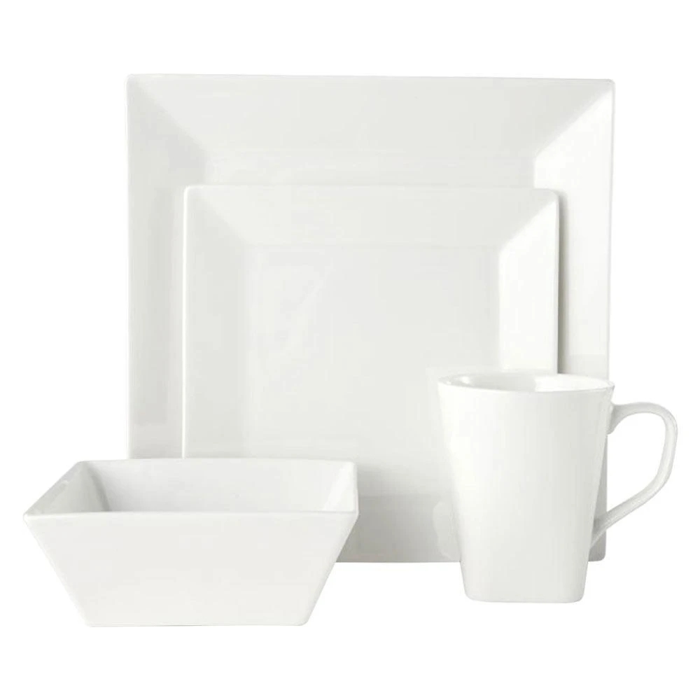 Mikasa Delray dinnerware brings sophistication to any table using minimalist style, clean lines, and smooth, pure white surfaces. Made of high quality bone china this collection is casual and stylish and great for everyday use. Chip resistant, microwave, dishwasher, freezer and oven safe. Square 16 piece dinnerware set, service for four, includes (4) each: 11 inch square dinner plate, 9 inch square salad plate, 5-3/4 inch square cereal bowl and 14 ounce mug.