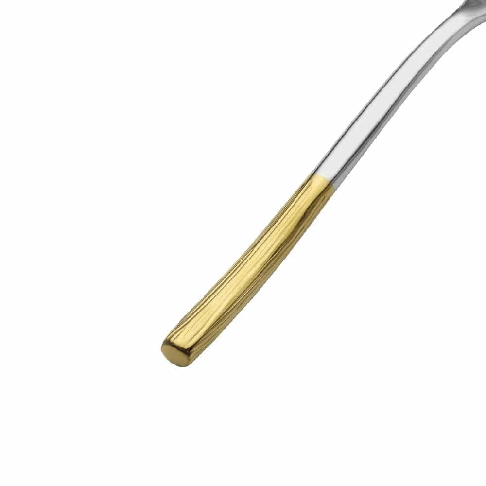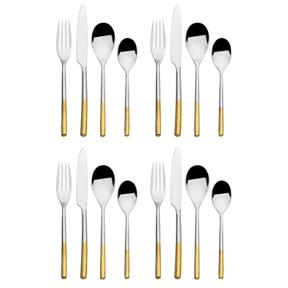 This Duval Forged Flatware Set features sleek, slender handles with gold line accents, and will add a contemporary feel to your table.