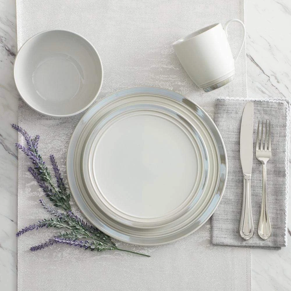 Elura Gray lays the foundation for a stylish, contemporary table setting that is perfect for everyday dining or casual dinner gatherings. Crafted from high-quality ironstone, these flat rim pieces feature a muted gray palette with a combination of matte and gloss finishes that complement your favorite flatware of stemware. Microwave and dishwasher safe. 4 piece place setting includes an 11 inch dinner plate, 9 inch salad plate, 6 inch soup bowl and 12 ounce mug.