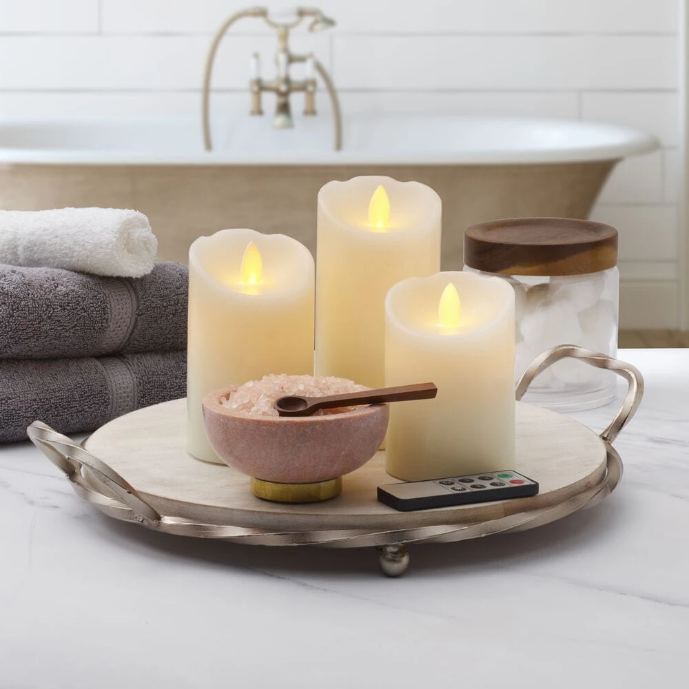 These Flameless Set of 3 Melted Edge Pillar LED Candles with Remote will create a warm and inviting ambiance in any room of your home.