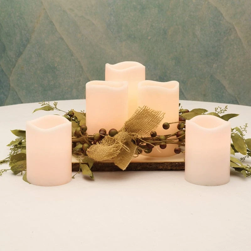 • Flameless Set of 5 Wave Pillar LED Candles and Remote includes 5 candles