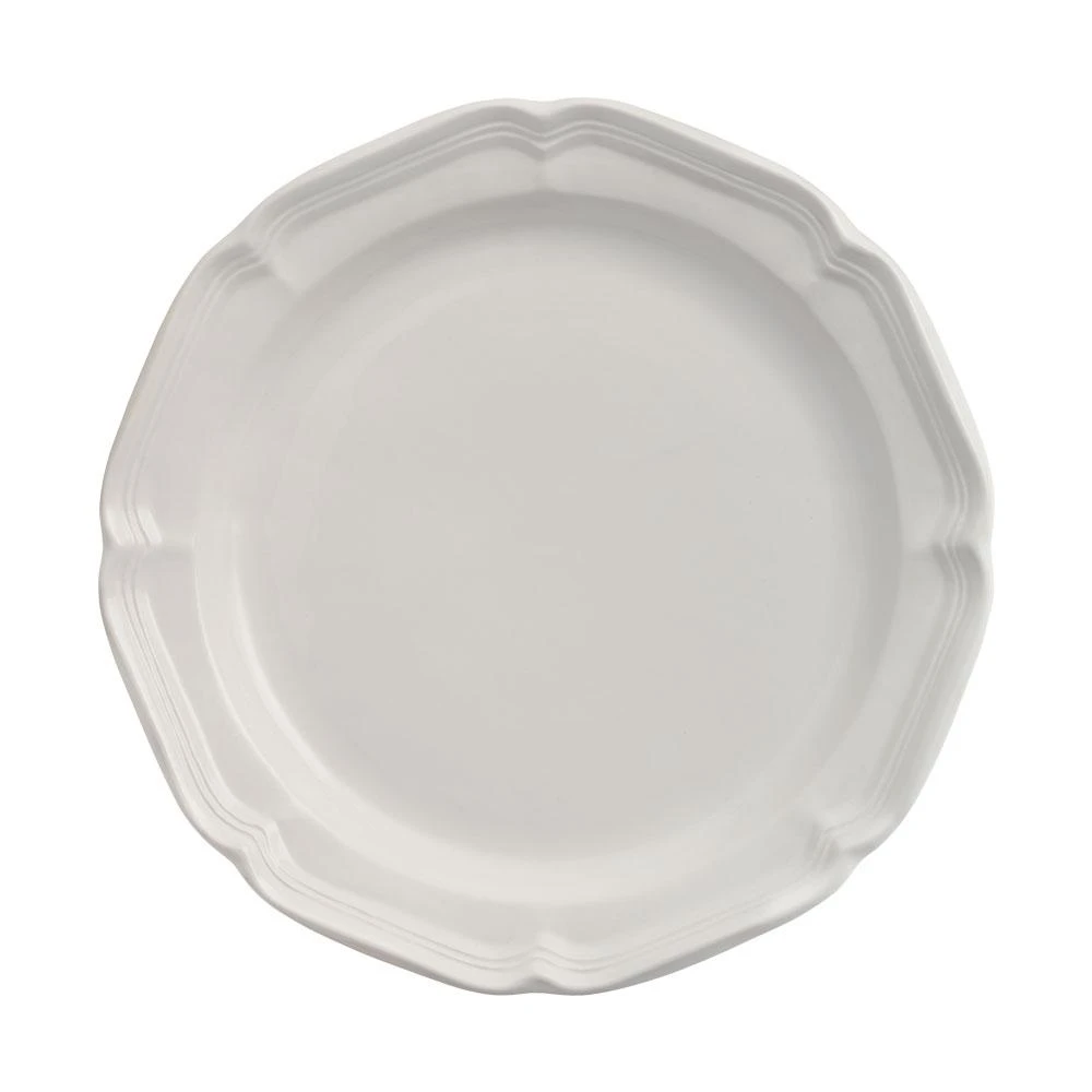 Gently scalloped edges and curves on these generous sized pieces add grace every time you set the table. Its rich cream color makes French Countryside a perfect base pattern to mix with colorful accent pieces. A best selling pattern, a complete suite of accessories is available to create a classically stylish casual dining statement. Expertly crafted from stoneware. Microwave and dishwasher safe. This dinner plate has an 10-3/4 inch diameter.