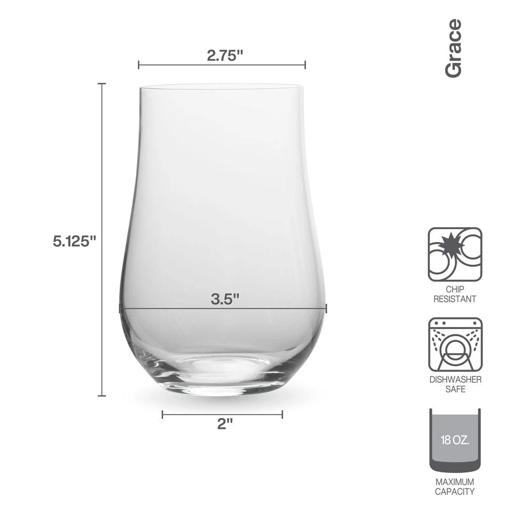 This Mikasa Grace Set of 4 Highball Glasses feature a distinct tulip shape that flares at the rim to open your senses to the aroma and taste of your beverage as you sip.