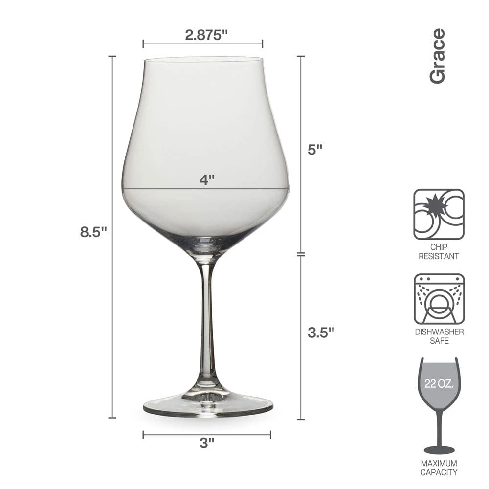 This Grace Set of 4 Red Wine Glasses feature a distinct tulip shape that flares at the rim to open your senses to the aroma and taste of your beverage as you sip.