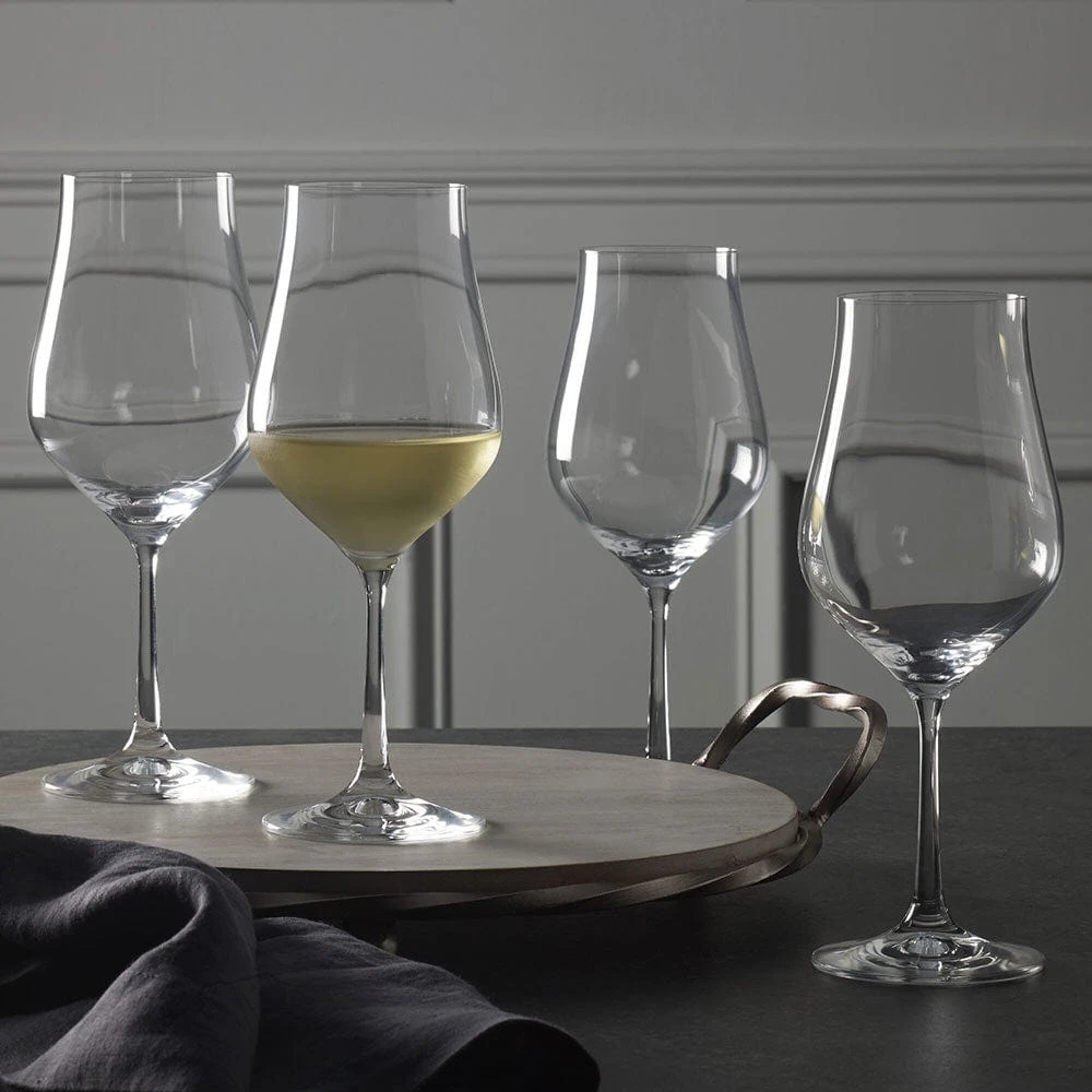 This Mikasa Grace Set of 4 White Wine Glasses feature a distinct tulip shape that flares at the rim to open your senses to the aroma and taste of your beverage as you sip.