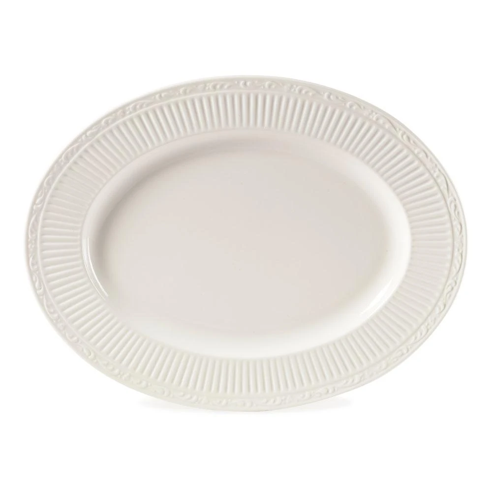 The fluted bands and column-like detailing of this dinnerware recall classical Italian architecture. A best selling pattern, a complete suite of accessories are available to create a classically stylish casual dining statement. Each piece is quality-crafted from stoneware. Italian Countryside is dishwasher and microwave safe. This oval platter measures 15 x 11-1/4 inches.
