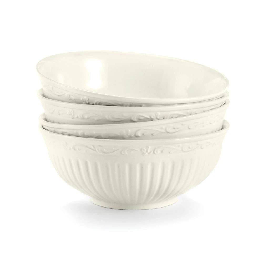 The fluted bands and column-like detailing of this dinnerware recall classical Italian architecture. A best selling pattern, a complete suite of accessories are available to create a classically stylish casual dining statement. Each piece is quality-crafted of Porcelain. Italian Countryside is dishwasher and microwave safe. Set of 4 fruit bowls, each measures 5-1/2 inch diameter and holds 10 ounces.