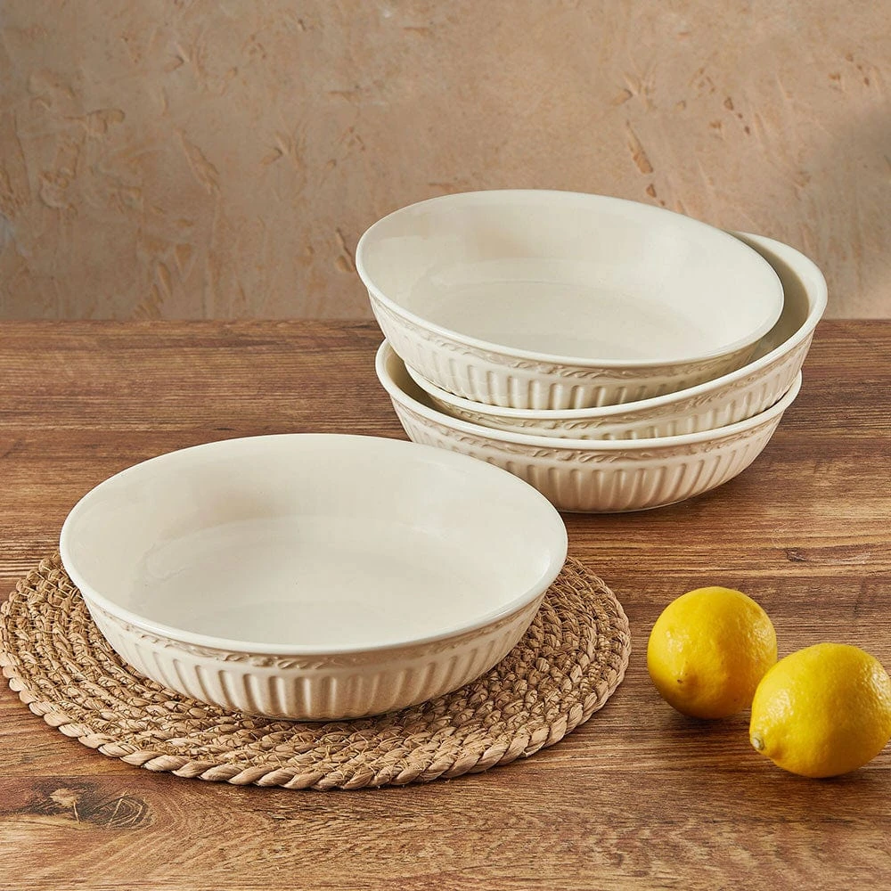 This Italian Countryside Set of 4 Pasta Bowls features fluted bands and column-like detailing, creating a classically stylish dining statement.