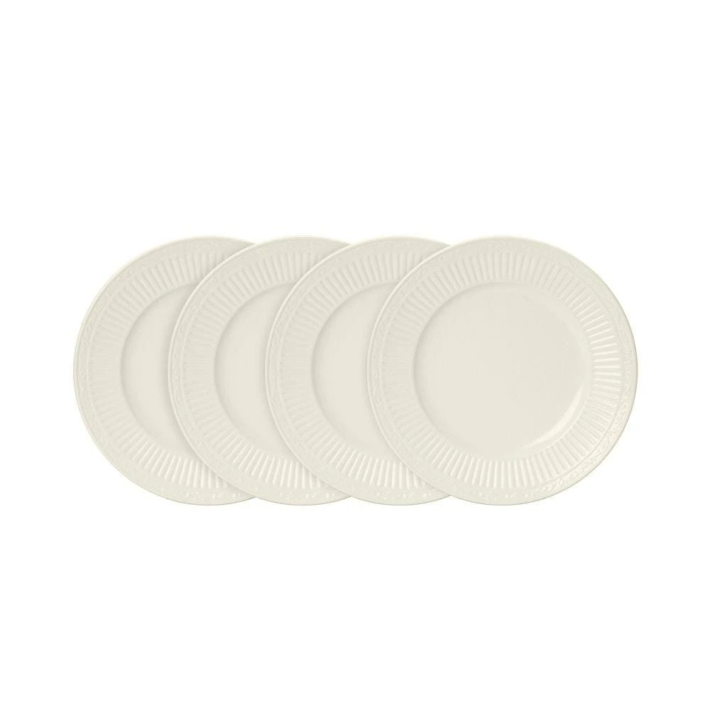 The fluted bands and column-like detailing of this dinnerware recall classical Italian architecture. A best selling pattern, a complete suite of accessories are available to create a classically stylish casual dining statement. Expertly crafted from porcelain, Italian Countryside is dishwasher and microwave safe. These salad plates are great for salads, but can also be used for a sandwich and chips, dessert or a snack. Set of 4 salad plates, each measures 8-1/4 inch diameter.