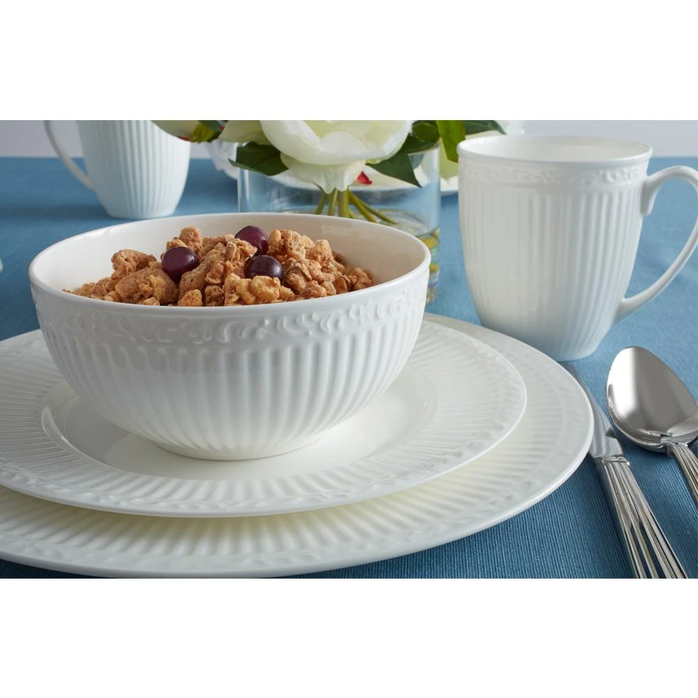 Italian Countryside Bone Dinnerware brings simple sophistication and elegance to every dining occasion. The fluted bands and column-like detailing of this collection recall classical Italian architecture. Crafted of bone china. Chip resistant, microwave, dishwasher, freezer and oven safe. Soup cereal bowl measures 6 inch diameter and holds 26 ounces.