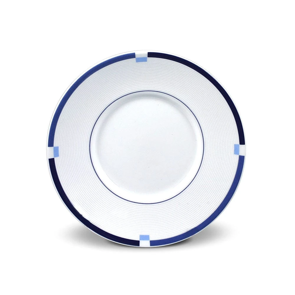This Jet Set Blue Set of Tea Cups and Saucers feature a simple white center that is outlined with a thin blue border, and the outer rim will capture the eye with a subtle ridged element framed by a thicker band of alternating blue tones. These are broken into four quadrants by unique tab accents, transforming your tabletop into a canvas of modern design and color.