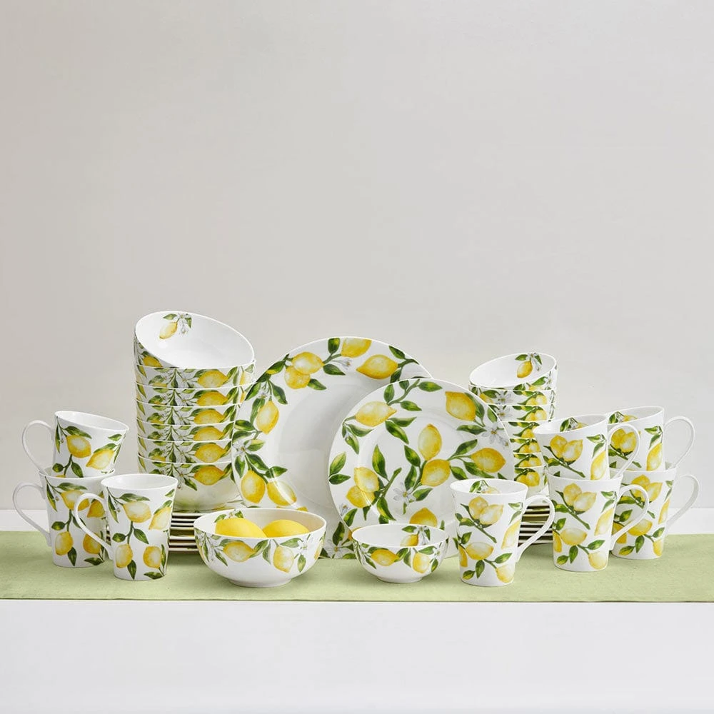 This Lemons Dinnerware Set features a beautiful watercolor lemon design and will bring the sunny color of a citrus orchard to your tabletop.