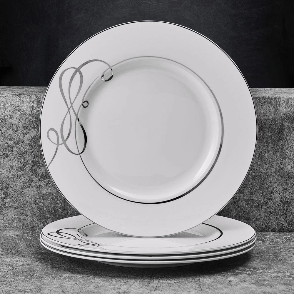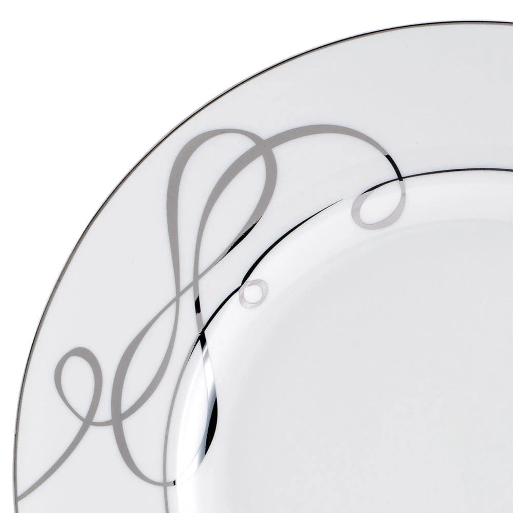 This Love Story Set of 4 Dinner Plates features a graceful ribbon heart motif in platinum accents that will help you celebrate true love and timeless elegance.