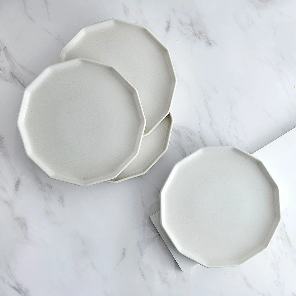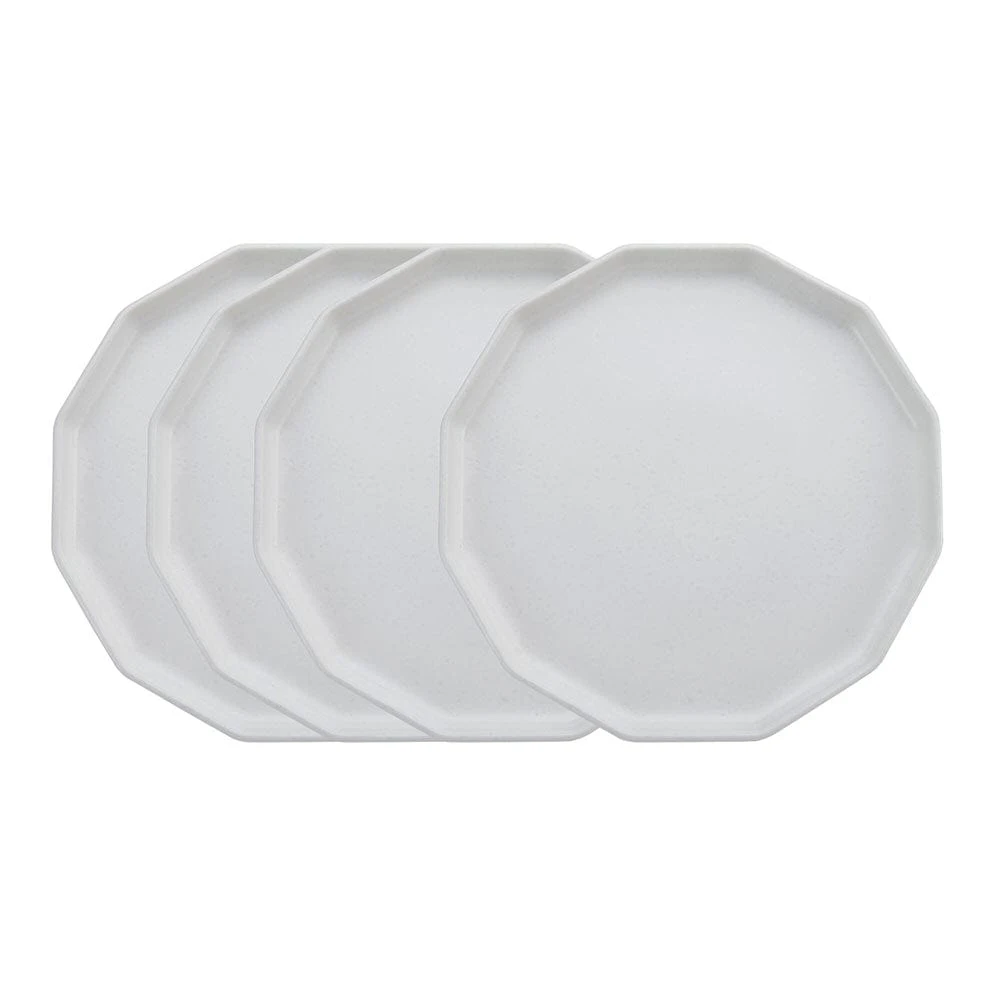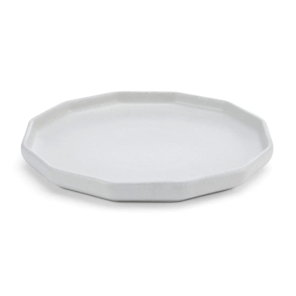 This Luxor White Dinner Plate Set features contemporary shapes and eye-catching speckle effects, on a reactive glaze finish. Due to the nature and hand-crafted qualities of reactive glaze, no two pieces are exactly alike and will exhibit unique variations in color and pattern. Product may slightly differ from image shown.