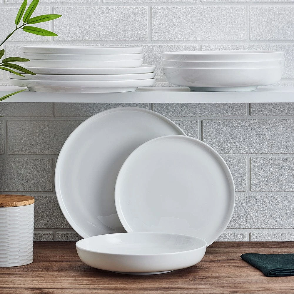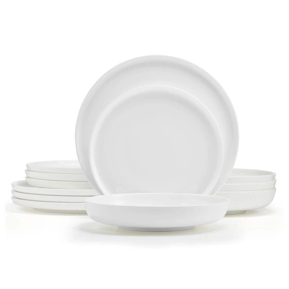 • Dinnerware set for 4: This 12 piece dinnerware set includes (4) each of: 11 inch dinner plate, 9 inch salad plate, and 9 inch diameter x 1-3/4 inch high (40 ounce) all-purpose bowl