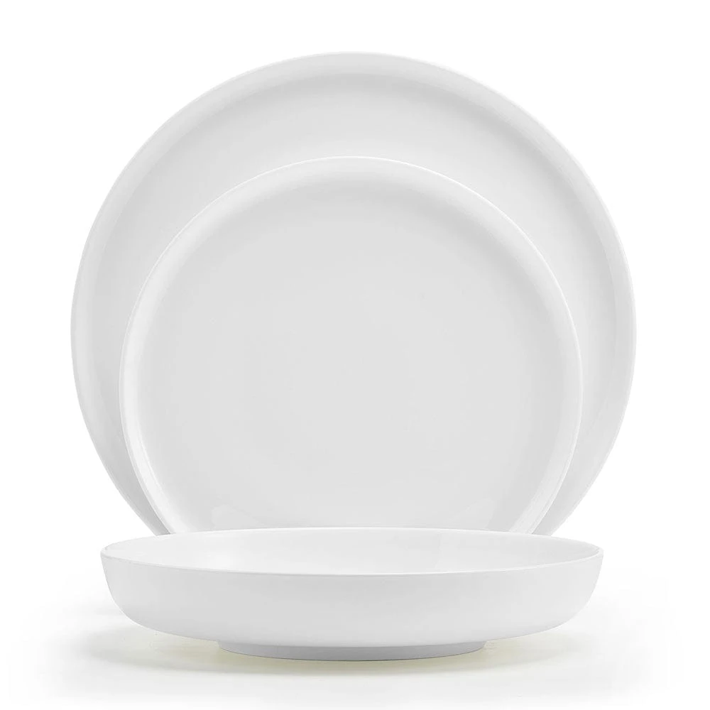 This Marion Dinnerware Set features a white body with a footed rim on each piece, bringing elegance and grace to your table, and is perfect for casual or formal dining.