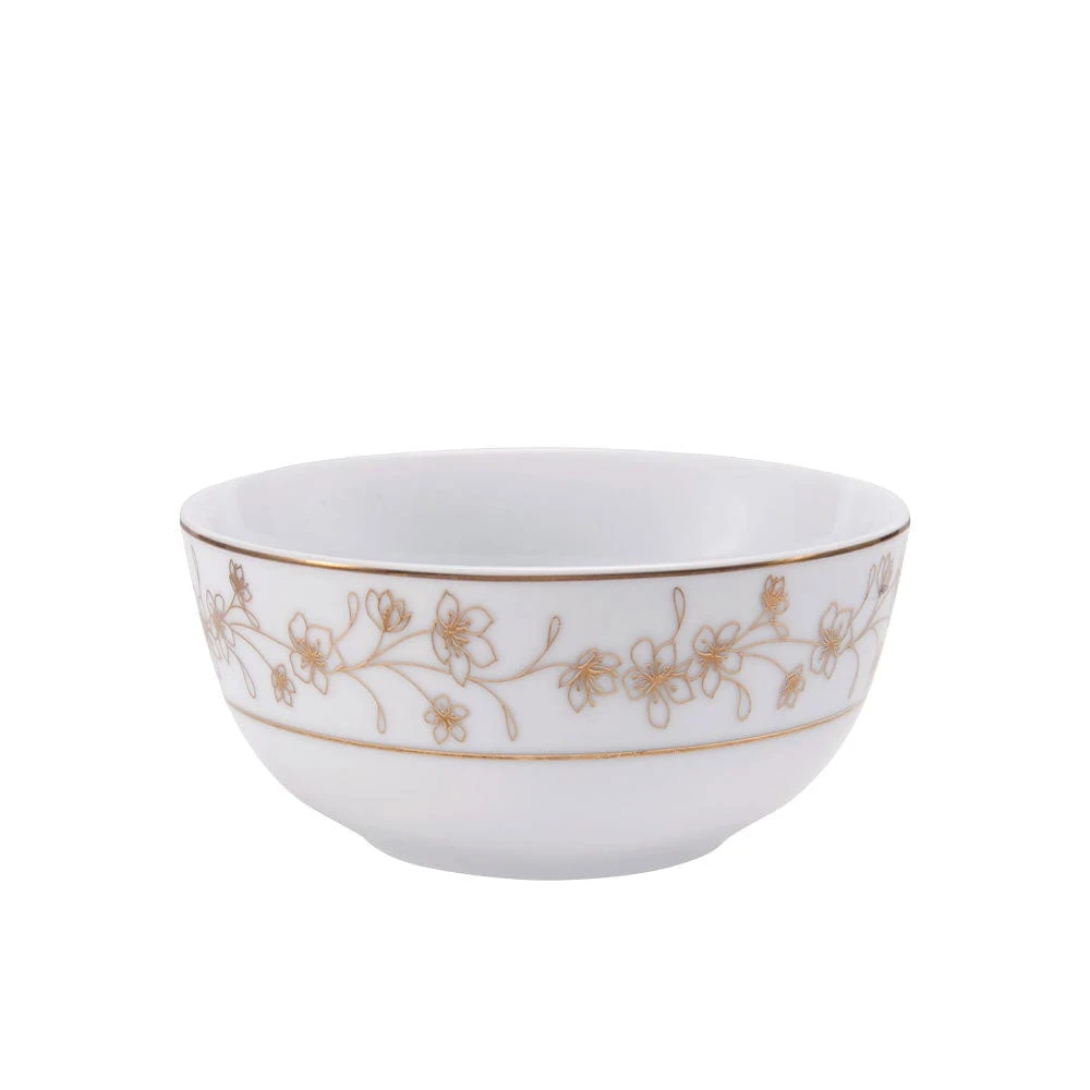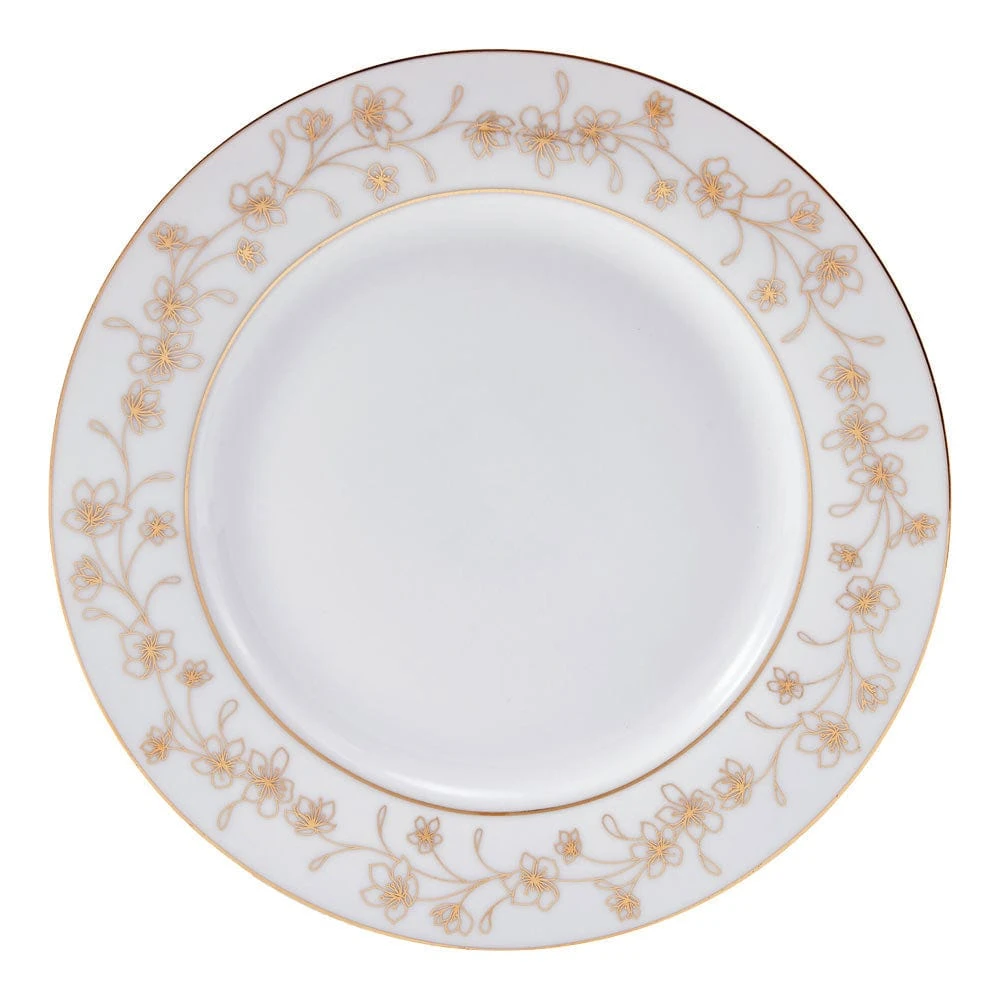 This Metallic Floral Gold Dinnerware Set features a white body, adorned with a garland of delicate florals in metallic gold, bringing a touch of elegance to your tabletop display.