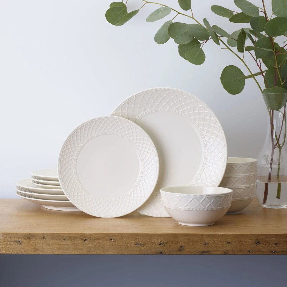This Napa Countryside Dinnerware Set features a timeless design of lattice work detail with added architectural elements, and is perfect for casual or formal dining.
