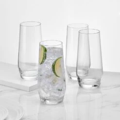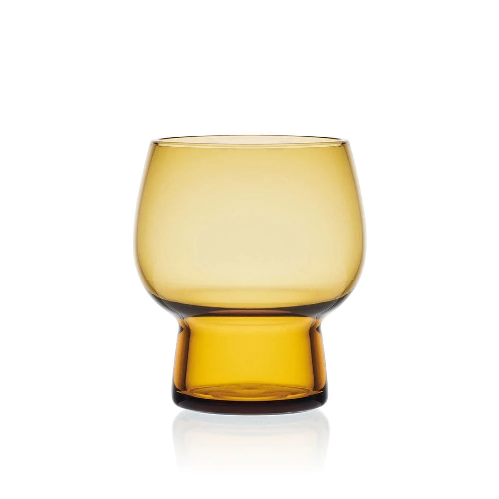 This Phoebe Amber Double Old Fashioned Glass Set features a modern amber tint, with a wide, open base that provides added capacity, and perfect for serving a variety of cocktails or cold beverages. For convenience, glasses stack for compact storage.
