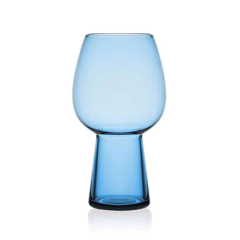 This Phoebe Blue Beer Goblet Glass Set features a modern blue tint, with a wide, open base that provides added capacity, and perfect for serving a variety of cocktails or cold beverages. For convenience, glasses stack for compact storage.