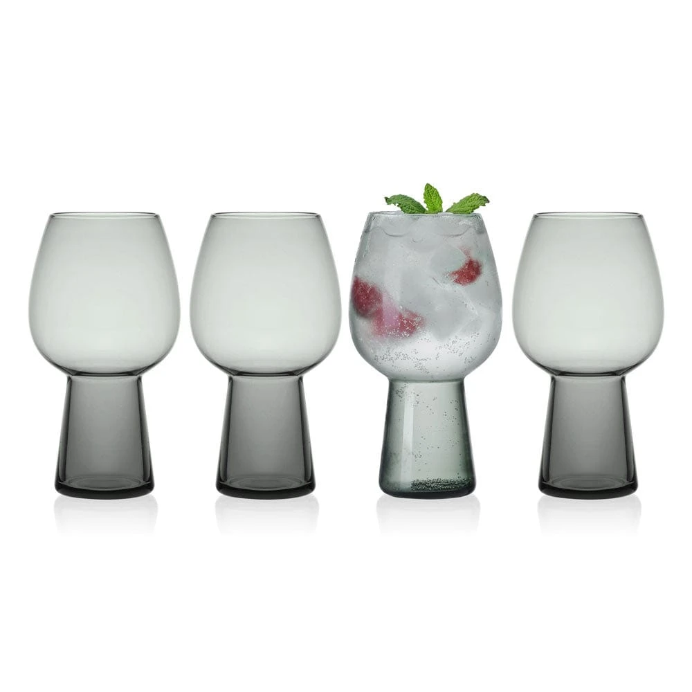 This Phoebe Smoke Beer Goblet Glass Set features a modern smoke tint, with a wide, open base that provides added capacity, and perfect for serving a variety of cocktails or cold beverages. For convenience, glasses stack for compact storage.