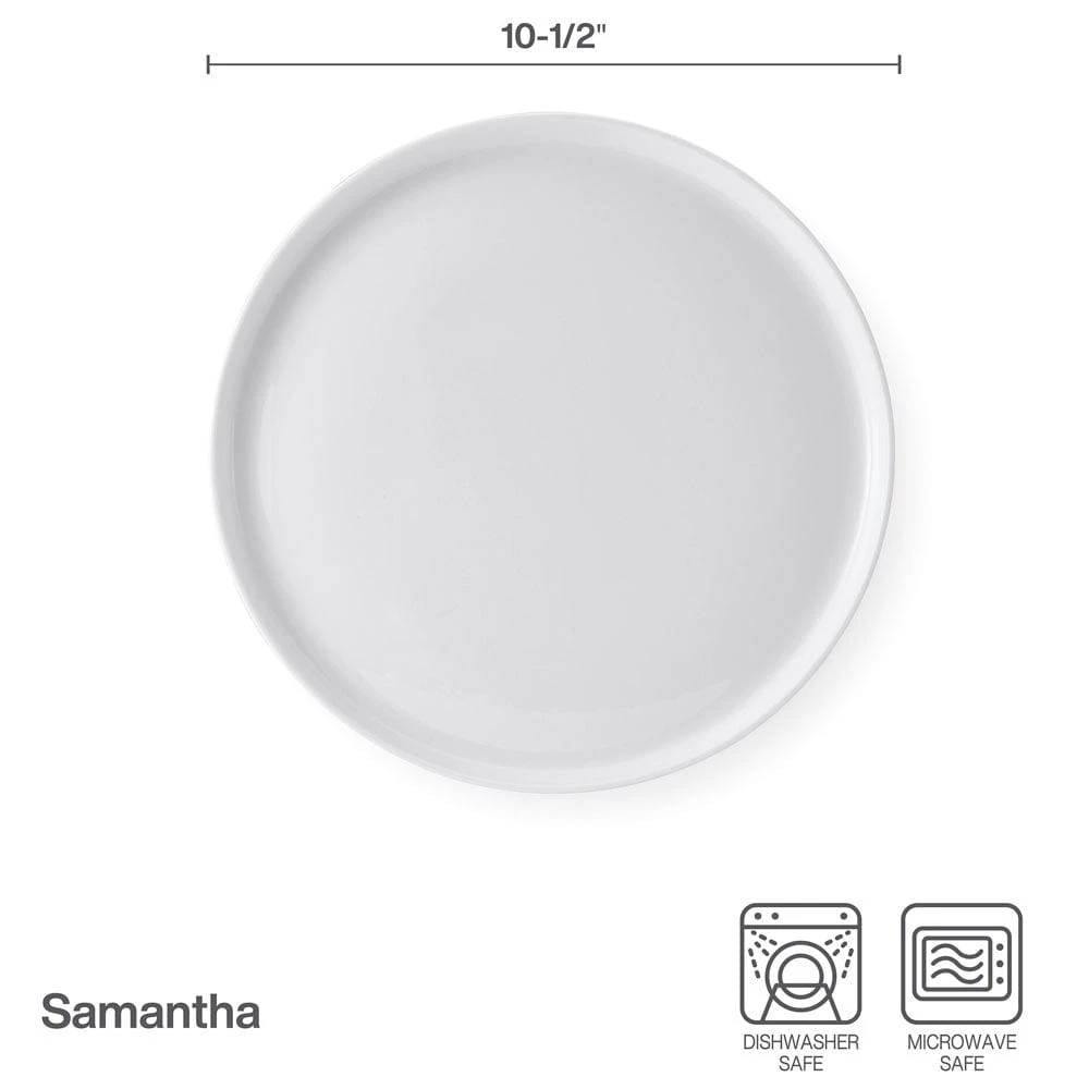 This Samantha Set of 4 Dinner Plates feature a stylish design in crisp white that will compliment and add a distinctly modern touch to your table.