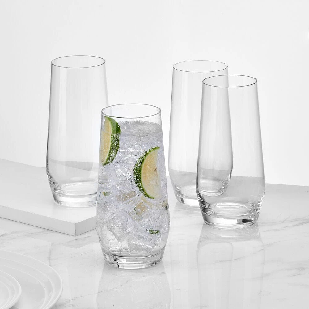 • Set of 4 Includes: each glass measures 6-1/2 inches tall with a 3-inch diameter and a 19-fluid ounce capacity