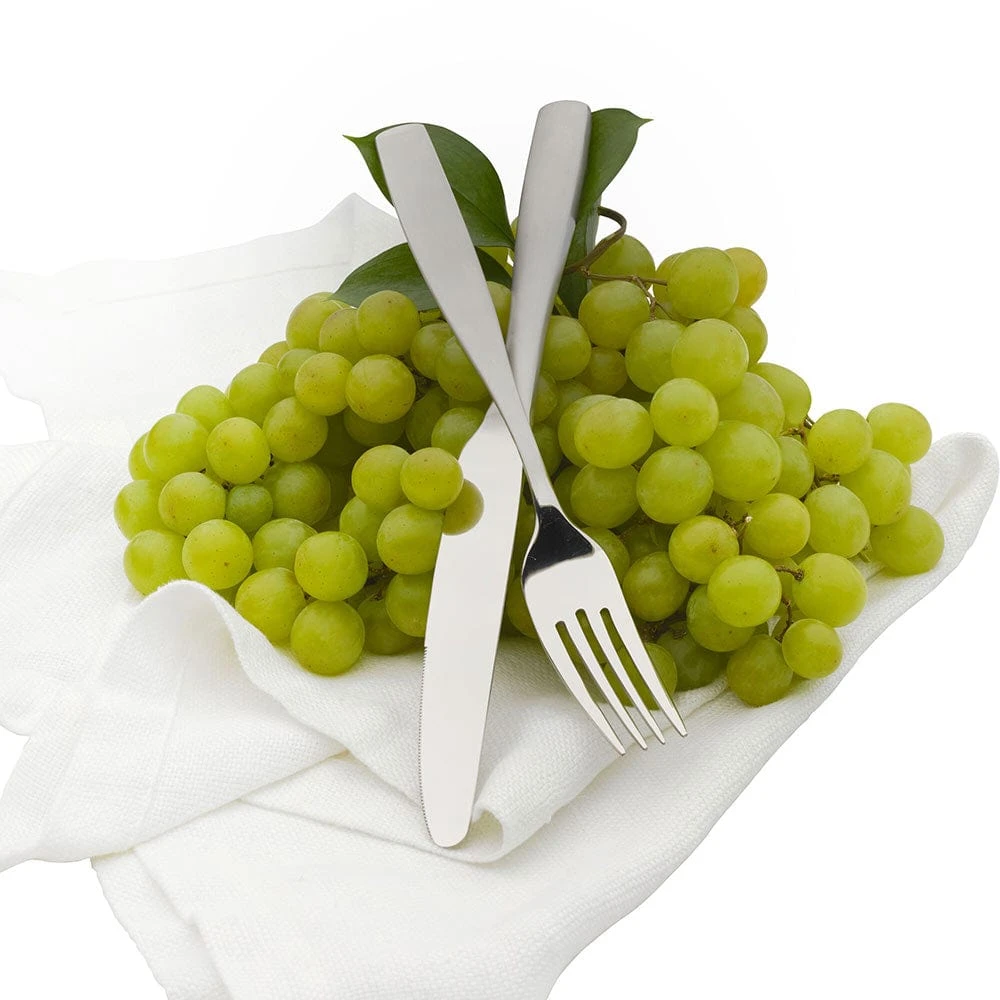 This Satin Loft Flatware Set features an understated design, with trendy, unexpected square cut angled tips, and a smooth satin finish and gentle curves that will add a touch of sophistication to your dinner gatherings and complement any table.