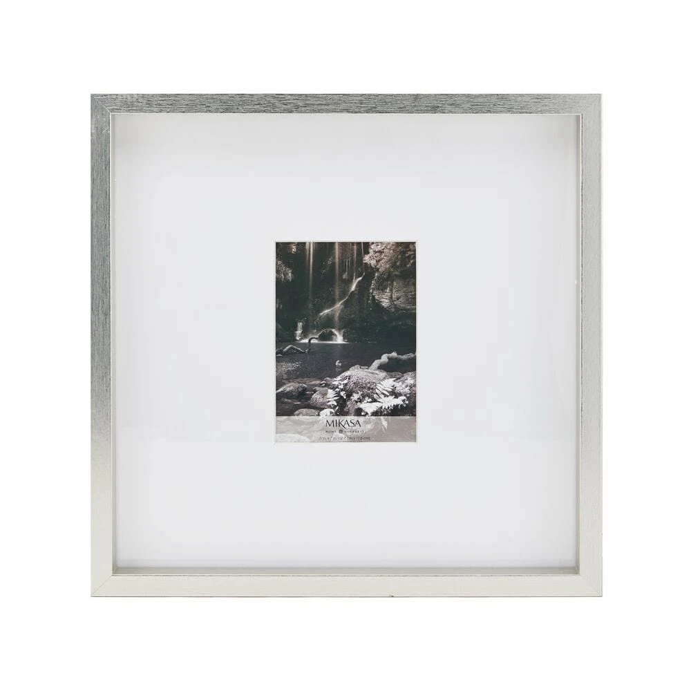 This Mikasa Silver 16 x 16 Gallery Frame features a sleek, squared edge design and a gray finish, and will handsomely highlight one of your favorite photos on your wall. The frame includes a white, 2mm beveled mat, and can be easily hung either horizontally or vertically using the sawtooth hangers on back.