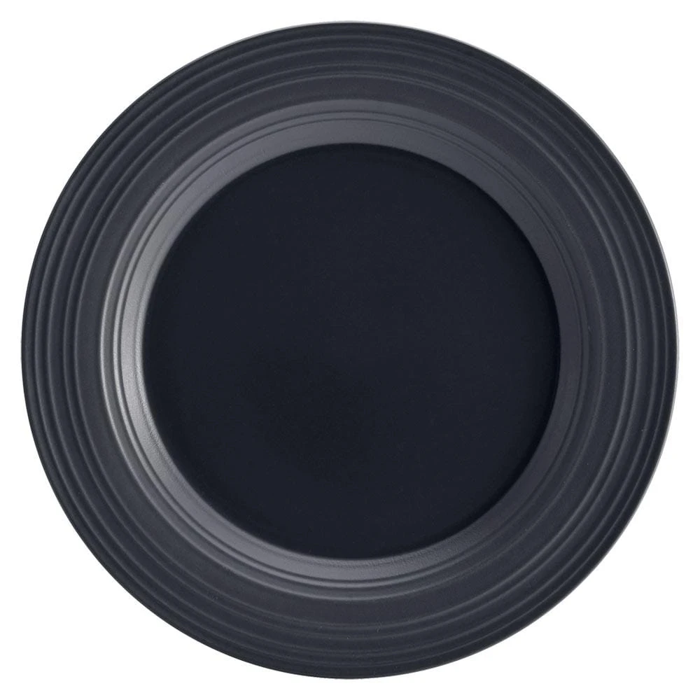 Swirl Graphite combines an organic shape, embossed texture, and dual, matte and shiny finish, for a truly modern look. Crafted of ironstone with a pin-firing technique which allows the entire bottom of the plate to be glazed, including the base. This process significantly reduces water absorption and increases chip resistance. Microwave and dishwasher safe. Round platter measures 12-1/2 inch diameter.