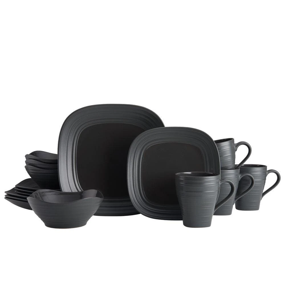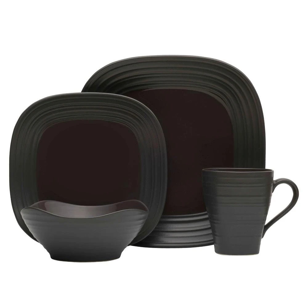 MIKASA Swirl Graphite Square 16 Piece Dinnerware Set, Service For 4
