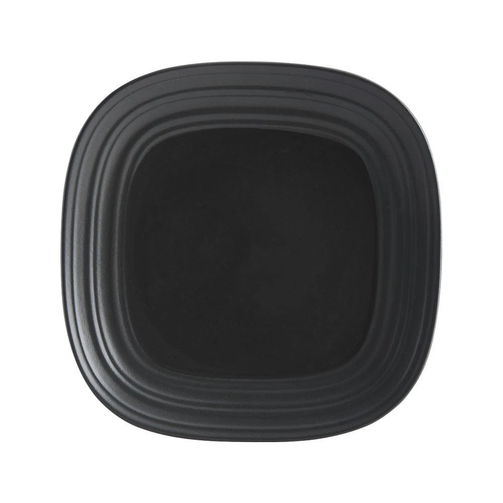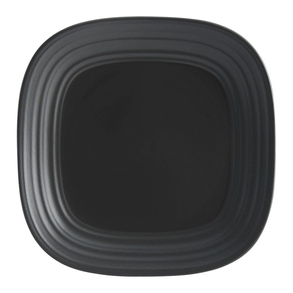 Swirl Graphite combines an organic shape, embossed texture, and dual, matte and shiny finish, for a truly modern look. The graphite color will add a bold touch, and a striking statement with its versatile style. Crafted of ironstone with a pin-firing technique which allows the entire bottom of the plate to be glazed, including the base. This process significantly reduces water absorption and increases chip resistance. 16 piece dinnerware set, service for four, includes (4) each: 10-3/4 inch square dinner plate, 8-1/2 inch square salad plate, 24 ounce square soup cereal bowl and 18 ounce square mug. Microwave and dishwasher safe.