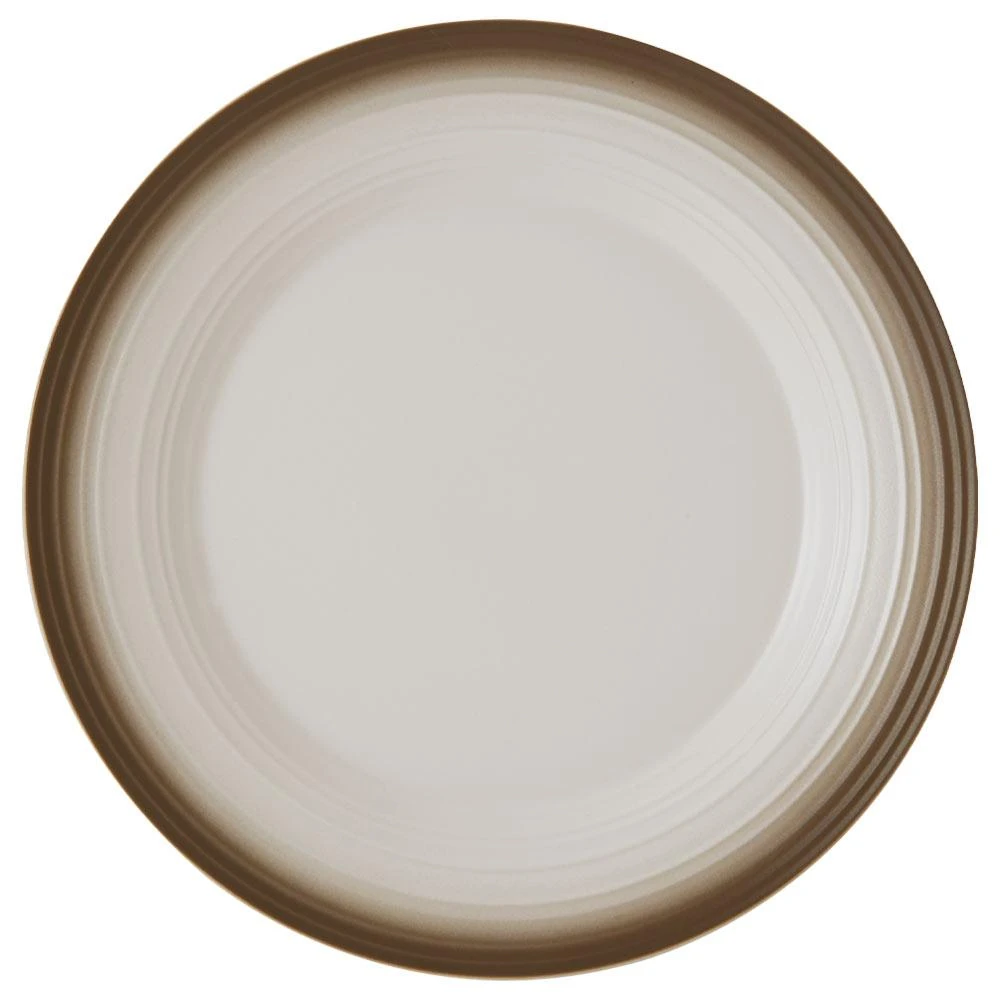 Swirl Ombre features clean lines in a rustic, earthy pattern with a matte and glossy finish, and beautifully graduated coloration, set a striking table setting. The soft rib on the outside of the collection offers a hand made look. Crafted of ironstone with a pin-firing technique which allows the entire bottom of the plate to be glazed, including the base. This process significantly reduces water absorption and increases chip resistance. Microwave and dishwasher safe. Platter measures 12-1/2 inch diameter.