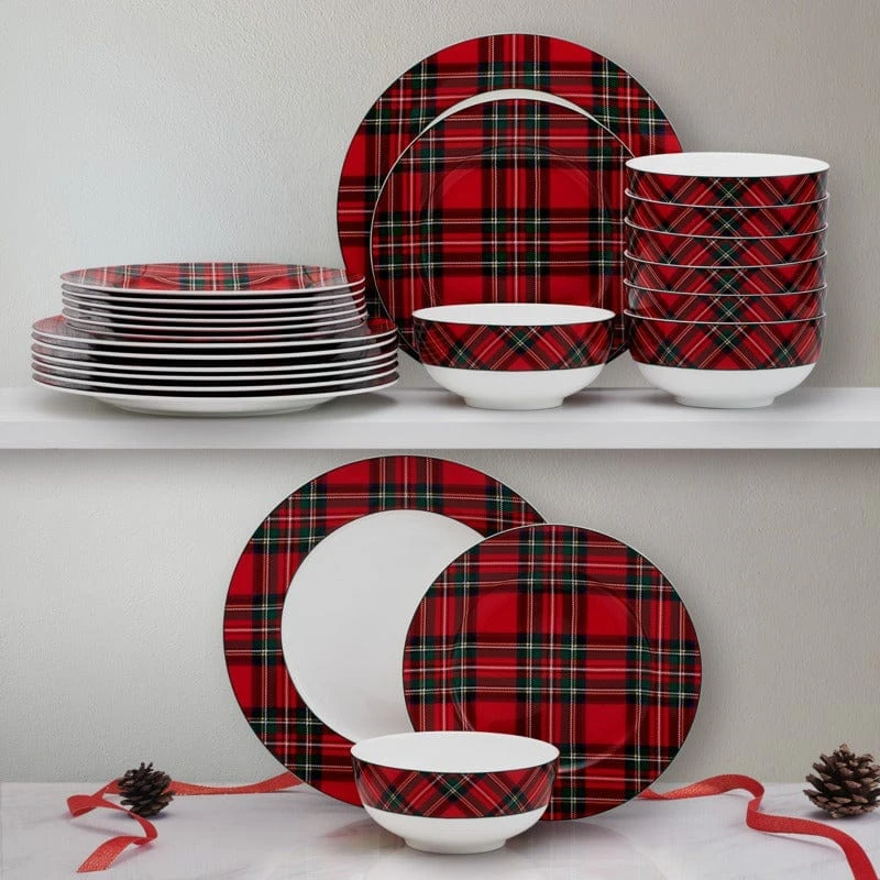 This Tartan Red 24 Piece Dinnerware Set features a festive beautiful holiday tartan design perfect for the holiday season.
