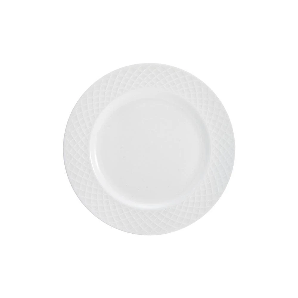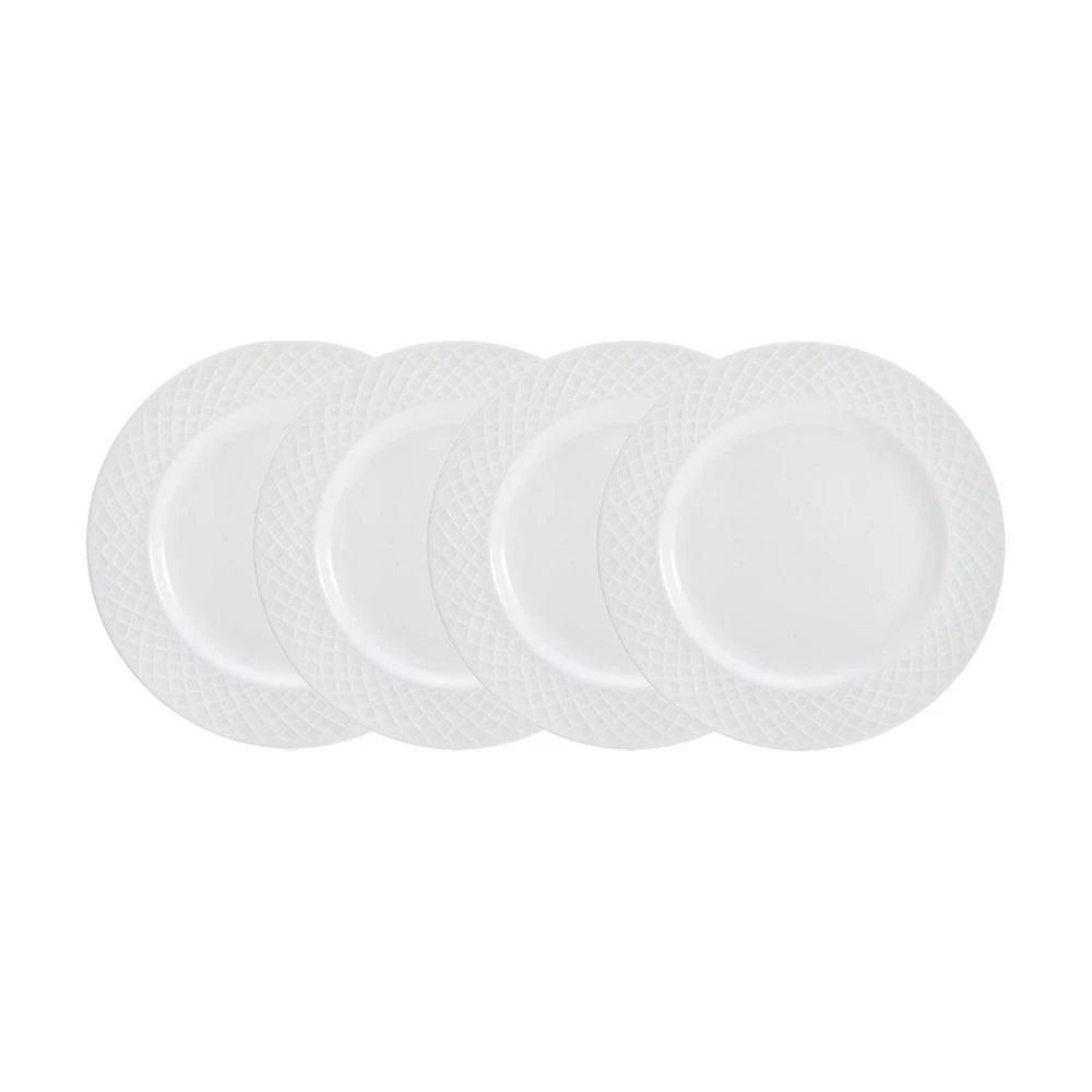 This Mikasa Trellis White Set of 4 Appetizer Plates feature a contemporary, criss-cross line design framing each piece, creating eye-catching depth and movement on your tabletop. This casual and stylish set is perfect for everyday use.