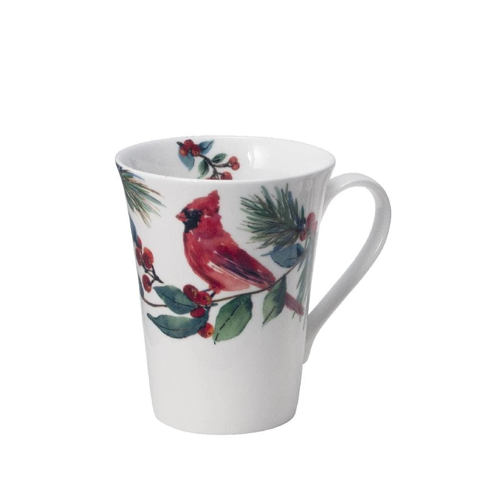 This Mikasa Winter Cardinal Set of 4 Mugs feature a beautiful watercolor poinsettia and cardinal design. Perfect for everyday use; can be dressed up or down for all your holiday gatherings.